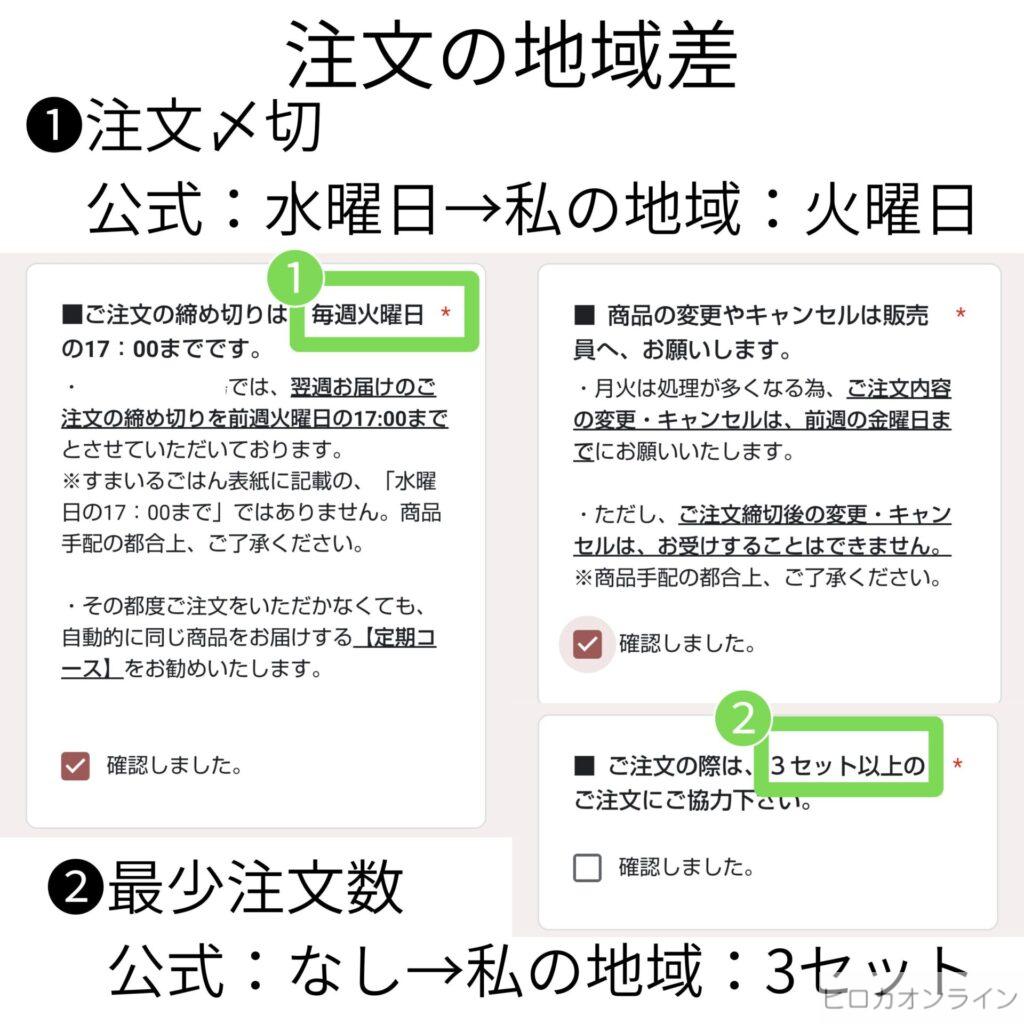 - 注文〆切:公式(水曜日)→私の地域(火曜日)