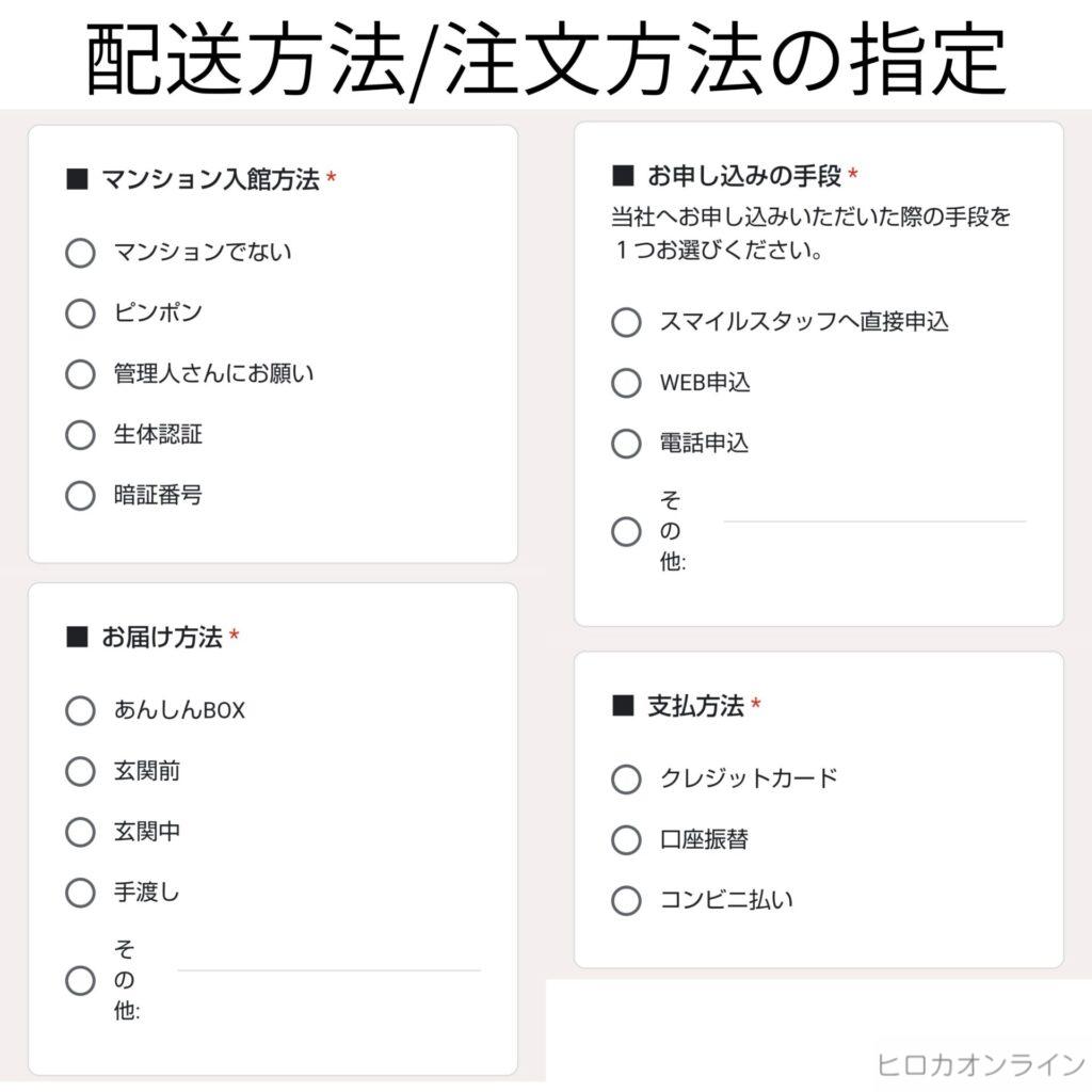アンケートで、配送方法/注文方法/支払方法 の希望も伝えられます。
