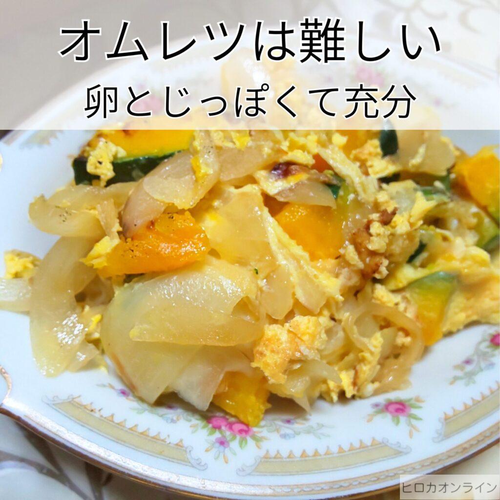 卵が1個少ないからかオムレツというよりは、半端な卵とじみたいに。でも、仮に卵1個加えても玉ねぎ0.5玉を入れたら同じ気がしました。