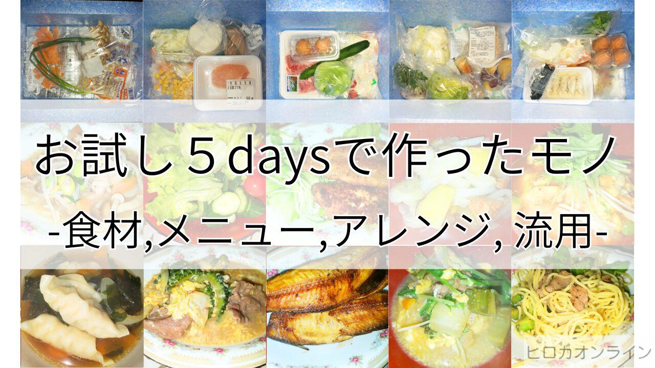 この記事では「ヨシケイお試し5days(カットミール)」を、実際に使った5日間についてまとめました。届いた食材、作った全料理(アレンジ、独自メニュー)、余った食材を、全部写真で載せています。