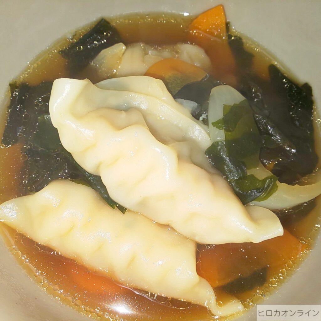 いつもイオンの安い餃子でスープにしてましたが、めちゃくちゃ崩れるので。「せっかく水餃子として届いたんだからどんなもんだろう」と。